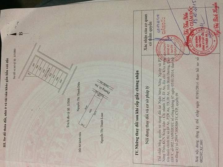 Bán đất gần ngã ba cây diệp dĩ an bình dương sổ hồng
